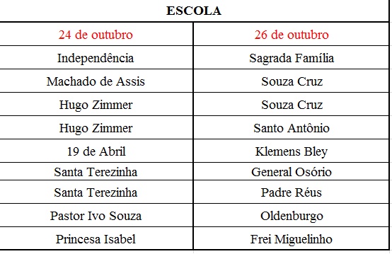 *As escolas marcadas com (1) ao lado do nome poderão indicar 2 representantes para a Sessão Plenária do Estudante, por conter um número elevado de alunos nas turmas do 4º ano.