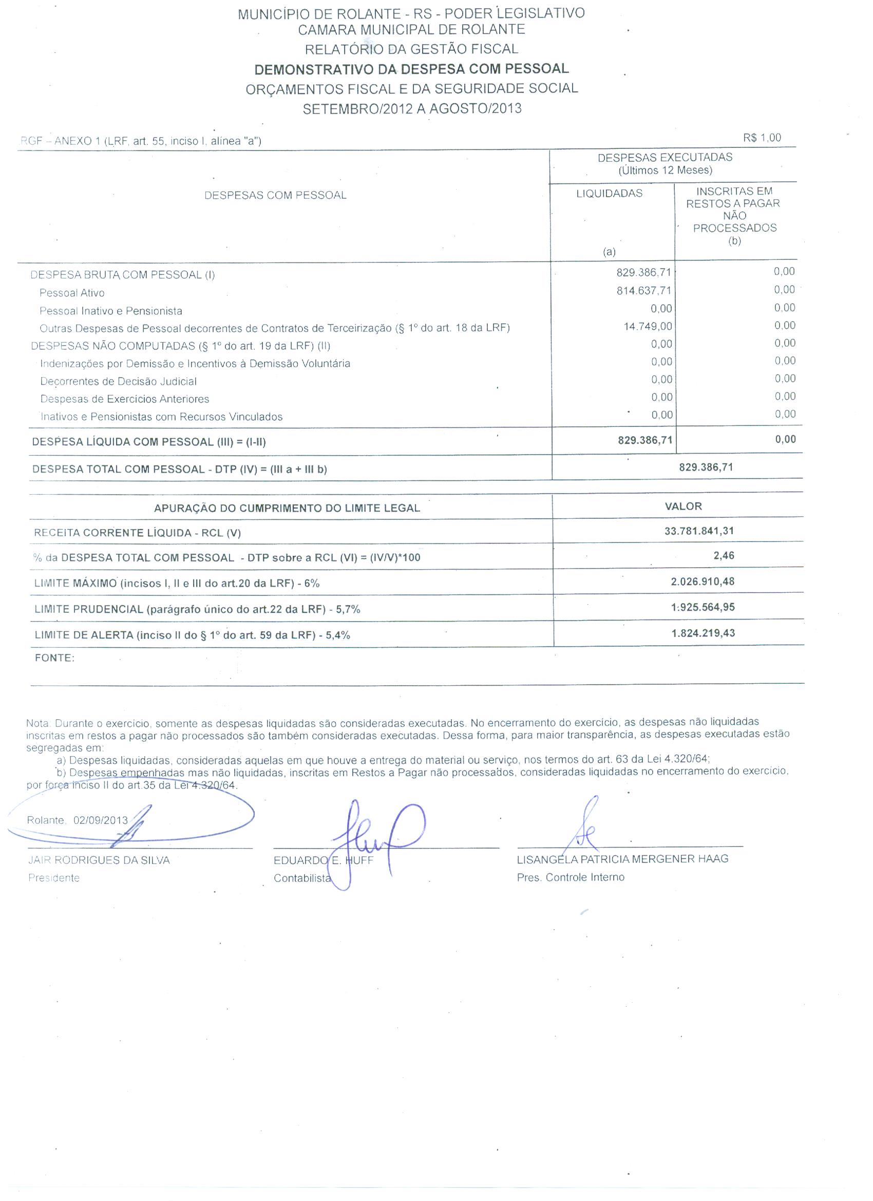 Relatório de Gestão Fiscal (RGF) - 2º Quadrimestre 2013 - 16/09/2013